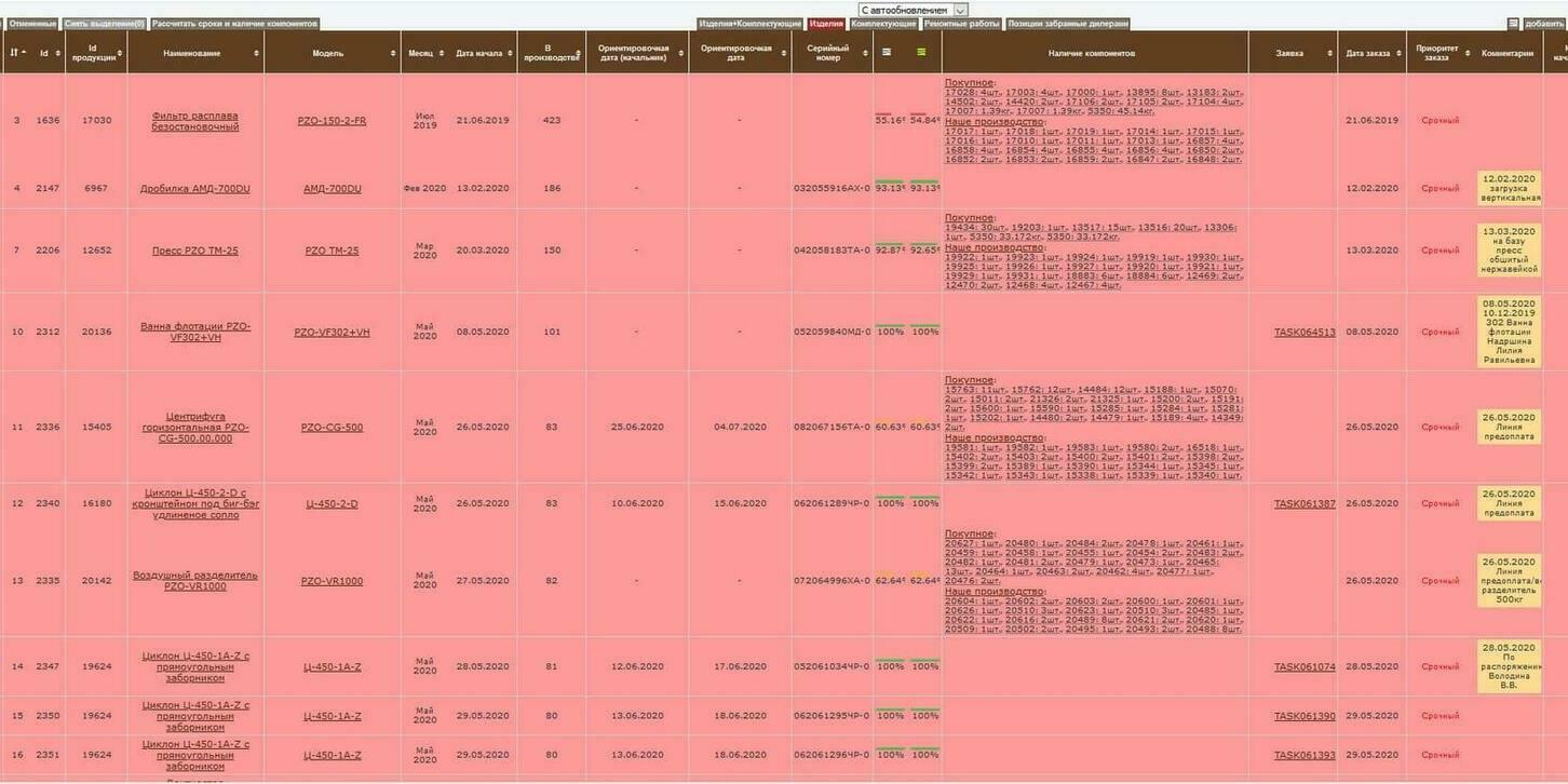 Учет производства, этапов и внутренних процессов компании в связке с финансами и заказами.